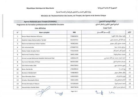 أعلنت الوكالة الوطنية للتشغيل (تشغيل)، القائمة النهائية للمرشحين للاستفادة من فرص التكوين والتدريب لبرنامج الهجرة الدائرية للتكوين والتدريب المهني في إسبانيا.