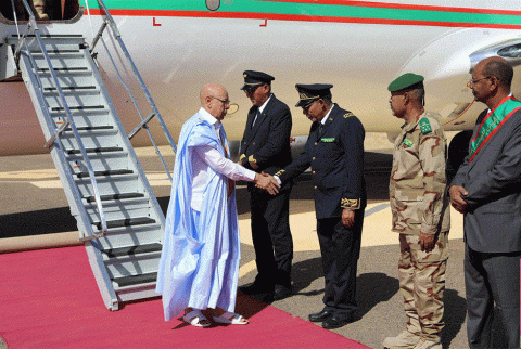 وكان في استقبال الرئيس عند سلم الطائرة بمطار النعمة الدولي، والي الحوض الشرقي، إسلم ولد سيدي، وقائد المنطقة العسكرية الخامسة، العقيد إدوم محمد عمار، ورئيس جهة الحوض الشرقي، محمدو ولد التجاني، وحاكم مقاطعة النعمة وعمدة بلديتها ونوابها، وذلك قبل أن يستعرض فخامته وحدات من القوات المسلحة أدت له تحية الشرف.