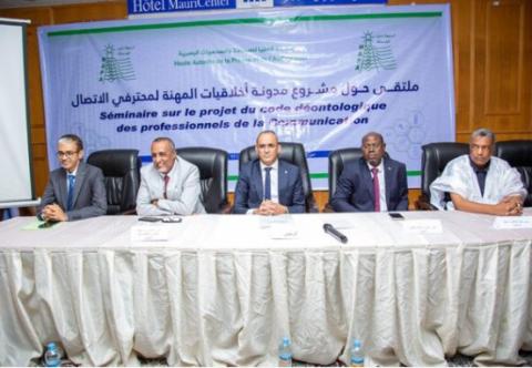 أشرف الأمين العام لوزارة الثقافة والفنون والاتصال والعلاقات مع البرلمان، سيدي محمد جدو خطري، اليوم الخميس بنواكشوط، على افتتاح ملتقى حول مشروع مدونة أخلاقيات المهنة لمحترفي الاتصال، المنظم من طرف السلطة العليا للصحافة والسمعيات البصرية (هابا).