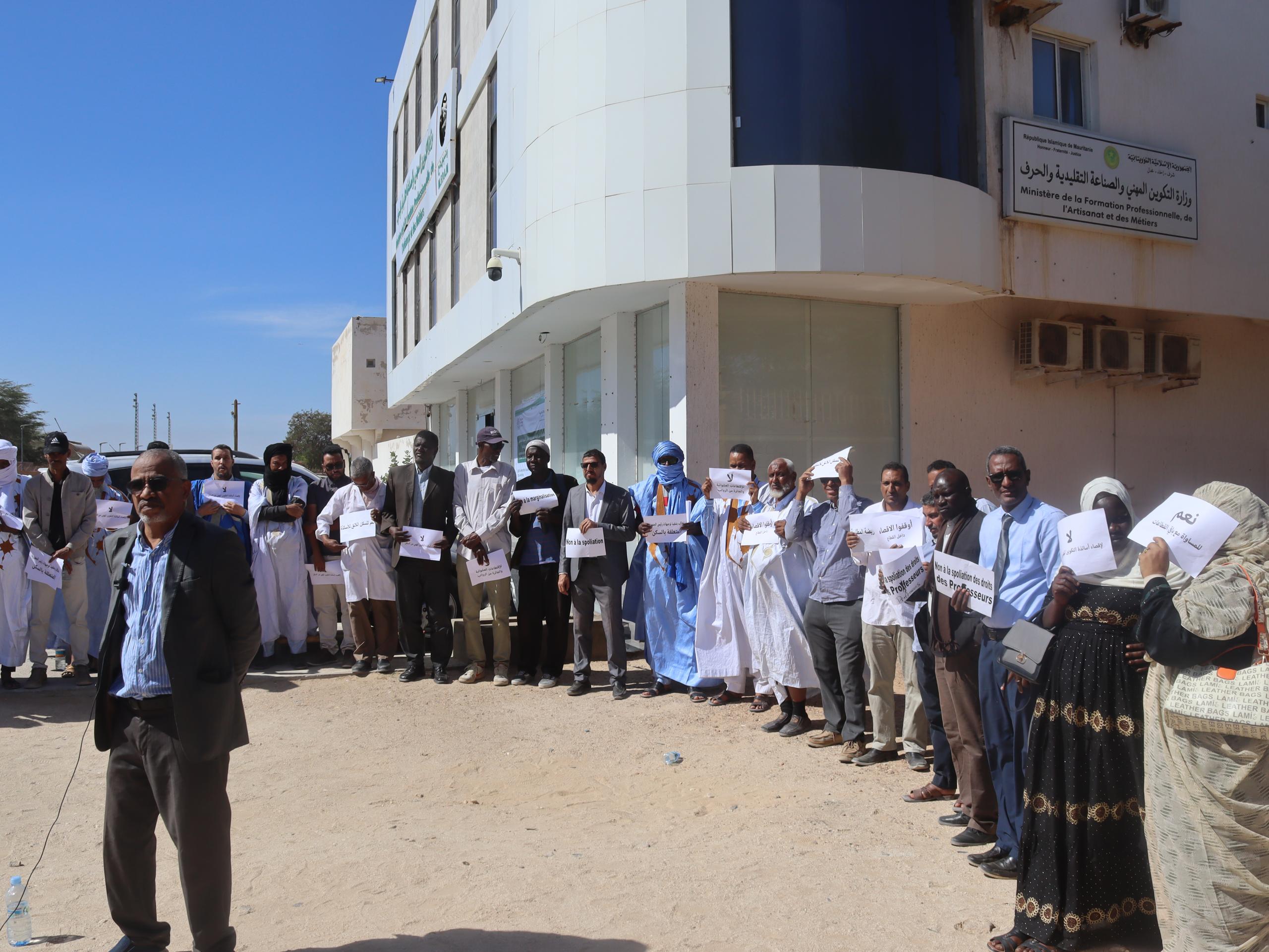 وقالت النقابة، في إيجاز صادر عنها، إنها عبّرت خلال الوقفة عن استيائها مما وصفته بتجاهل حقوق أساتذة التكوين الفني والمهني، وعلى رأسها عدم إشراكهم في برنامج السكن الذي تعهّد به رئيس الجمهورية لصالح المدرسين.