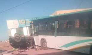 شهد محيط الحرم الجامعي، صباح اليوم، حادث سير مقلق إثر اصطدام باص مخصص لنقل الطلاب بسيارة شخصية من نوع تيوتا ايبرد يستغلها شاب وشابة، قرب وكالات البنوك المستحدثة، في واقعة أعادت إلى الواجهة إشكالية السلامة المرورية في هذا الفضاء الحيوي.