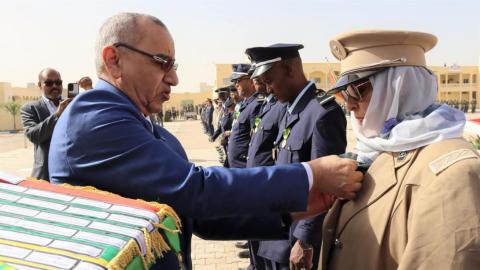 وشح وزير الداخلية وترقية اللامركزية والتنمية المحلية، محمد أحمد ولد محمد الأمين، باسم الرئيس محمد ولد الشيخ الغزواني، صباح اليوم الثلاثاء بمقر قيادة أركان الحرس الوطني، عددا من الإداريين والموظفين بالوزارة، إلى جانب ضباط وضباط صف وحرسيين ووكلاء من قطاعات الحرس الوطني والشرطة الوطنية والمندوبية العامة للأمن المدني وتسيير الأزمات، وذلك بمناسبة الذكرى الـ65 لعيد الاستقلال الوطني.