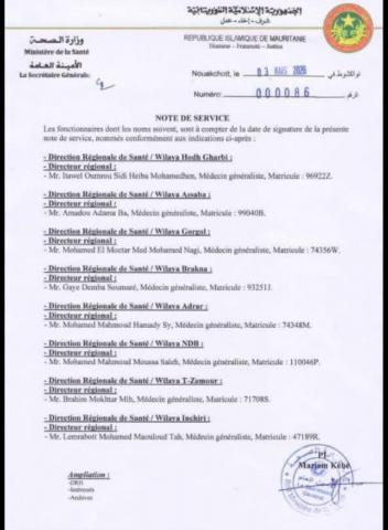 أصدرت وزارة الصحة مذكرة بتعيين مديرين جهويين للصحة العمومية في بعض الولايات.