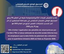 ودعا الصندوق كافة المشغلين إلى الالتزام بهذا الموعد المحدد من أجل تفادي أي جزاءات أو غرامات ناتجة عن التأخير في تسديد الاشتراكات المستحقة.