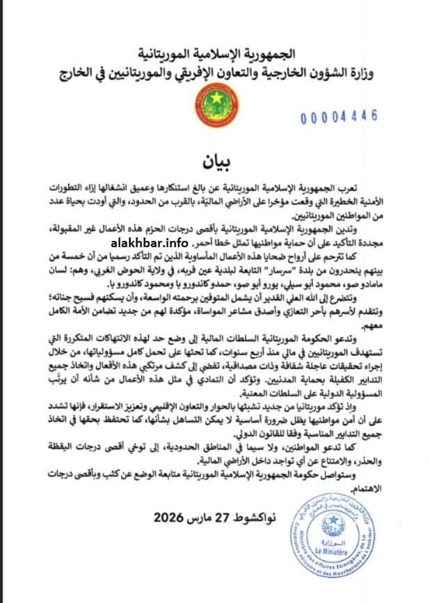 عاد رئيس الجمهورية محمد ولد الشيخ الغزواني، مساء أمس، إلى العاصمة نواكشوط قادما من العاصمة السنغالية داكار، حيث شارك في الاحتفالات المخلدة للذكرى 65 للعيد الوطني لجمهورية السنغال.