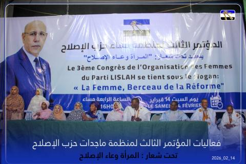 عقدت منظمة نساء حزب الإصلاح مساء أمس السبت 14 فبراير 2026. في العاصمة نواكشوط مؤتمرها الثالث، تحت شعار: “المرأة وعاء الإصلاح”، وسط حضور واسع من قيادات الحزب وجمهور من مناصريه.