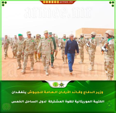 أدى معالي وزير الدفاع وشؤون المتقاعدين وأولاد الشهداء، السيد حنن ولد سيدي، رفقة قائد الأركان العامة للجيوش، الفريق محمد فال الرايس الرايس، صباح اليوم الثلاثاء 31 مارس 2026، زيارة تفقد واطلاع للكتيبة الموريتانية التابعة للقوة المشتركة لمجموعة دول الساحل الخمس.