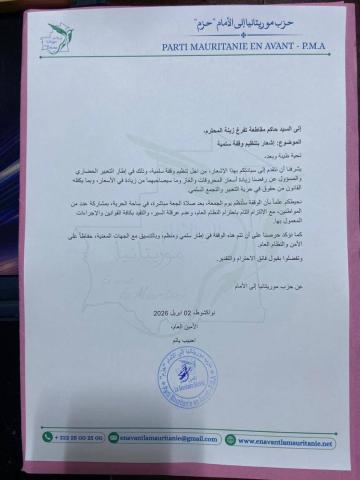 وقال حزب موريتانيا إلى الأمام إن حاكم مقاطعة تفرغ زينه، رفضت منح الترخيص لهم لتنظيم وقفة احتجاجية دون تقديم مبرر كافٍ، مكتفية بالقول إنها لن ترخص لأي وقفة في هذا التوقيت.